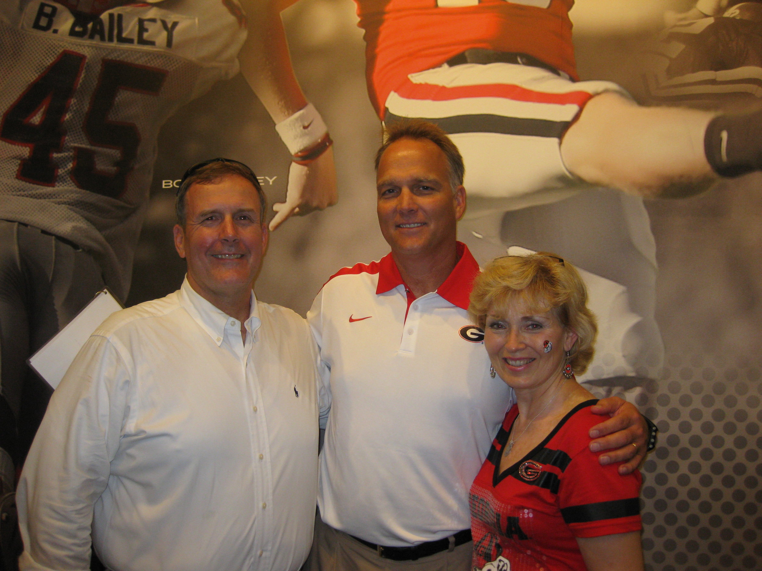 John, Tammy, and James’ brother, John, with Coach Mark Richt